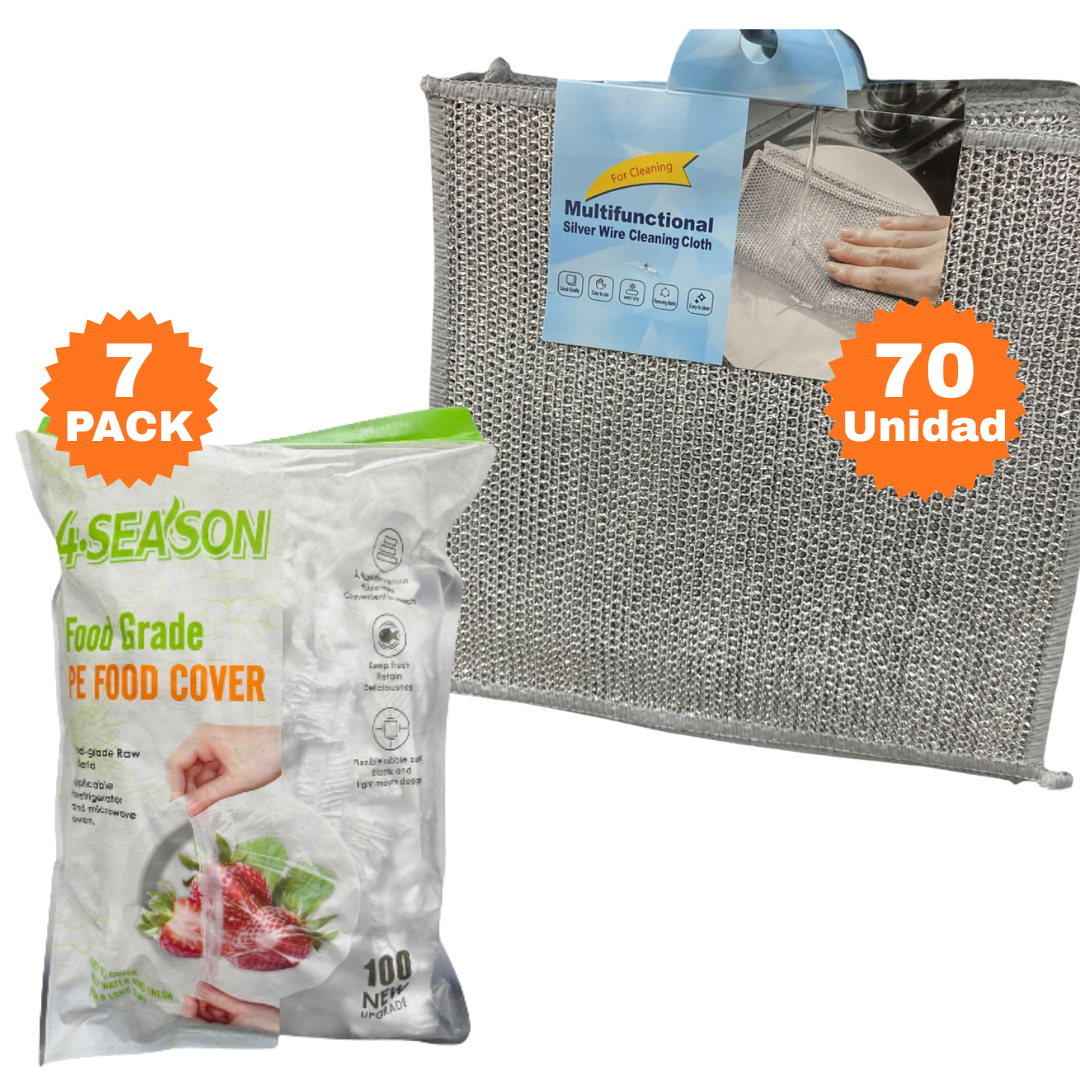 70 unidades de paños metálicos dobles + 700 cubiertas de alimentos elástica